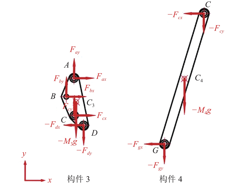 Fig.7 Force analysis of component 3 and component 4 in bionic mechanism