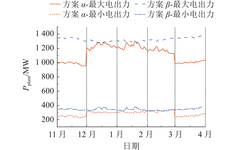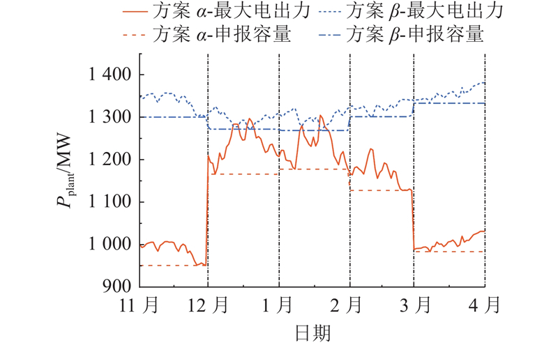 在选定机组运行模式后,给定目标月份内各日的热负荷数据,即可计算出该月内每日的全厂最大出力,进而取其最小值作为申报容量,用于计算该月的容量电费.