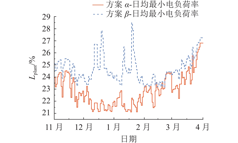 (2)热电厂在不同运行方案下可以获得的综合收益与供暖期热负荷需求紧密相关,且存在临界值. 当热负荷超过临界值时,高背压模式供热的低能耗特性带来的节煤效益更显著,应优先采用高背压机组和抽凝机组联合运行的方案;当热负荷低于临界值时,高背压模式供热的节煤效益低于纯凝模式带来的灵活性效益,应采用纯凝机组和抽凝机组联合运行的方案.