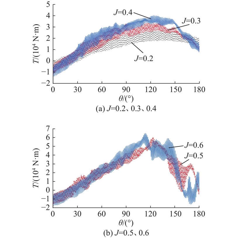 图 6 CFD仿真得到的不同进速系数下的回转负载