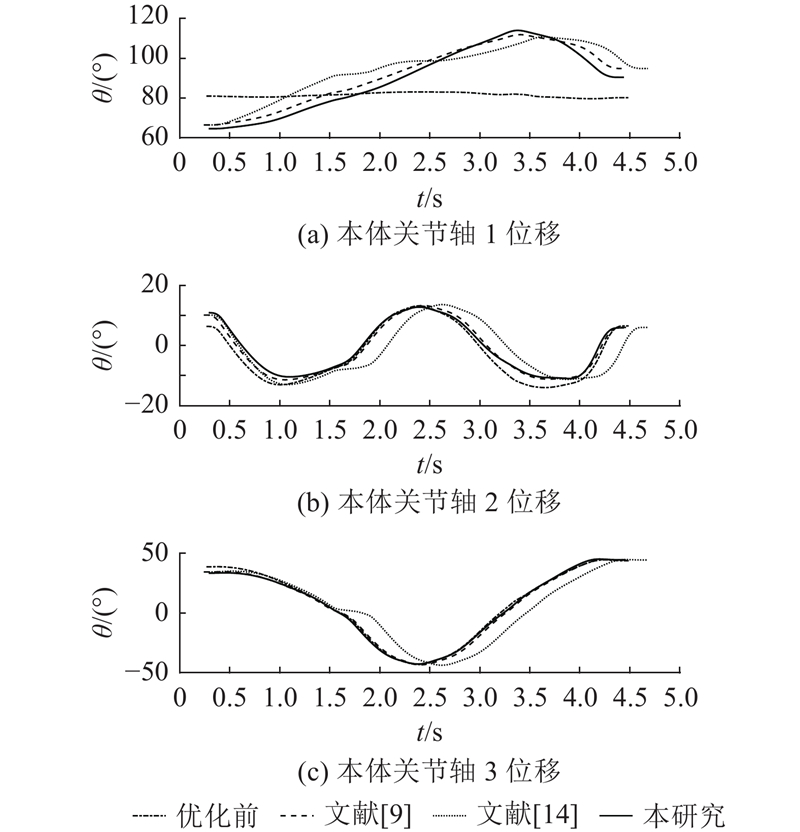 图 13 算法优化前后冗余机器人本体轴位移对比 (曲线喷涂)