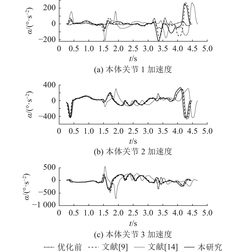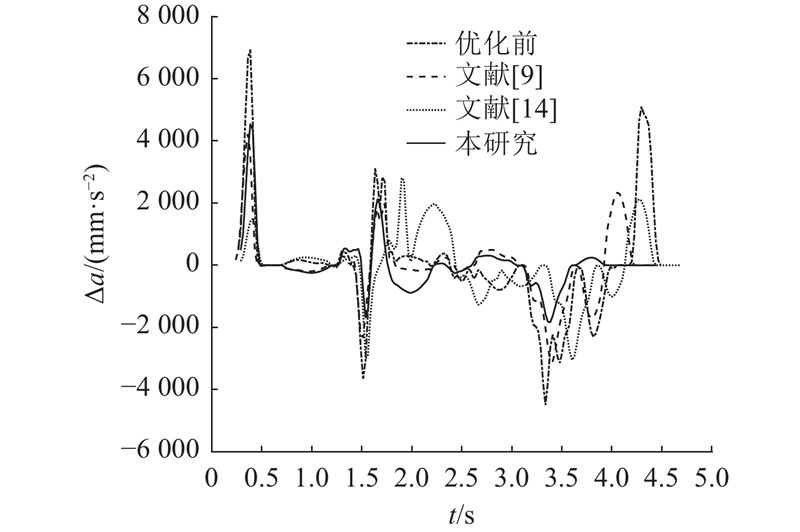 图 17 算法优化前后冗余机器人本体轴加速度对比 (曲线喷涂)