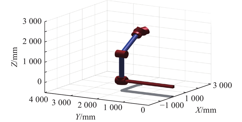 机器人在配置移动外部轴之后处于冗余状态. 在机器人运动范围内,已知末端执行器在笛卡尔空间的位置和姿态,可解出无穷多组逆运动学解,赋予系统的冗余关节合适的变量值,是求冗余机器人逆运动学解相对简单的方法. 田威等[19]针对附加外部轴的工业机器人提出分站式定位逆解方法,为冗余机器人的逆运动学求解提供了思路. 已知末端执行器位姿矩阵: