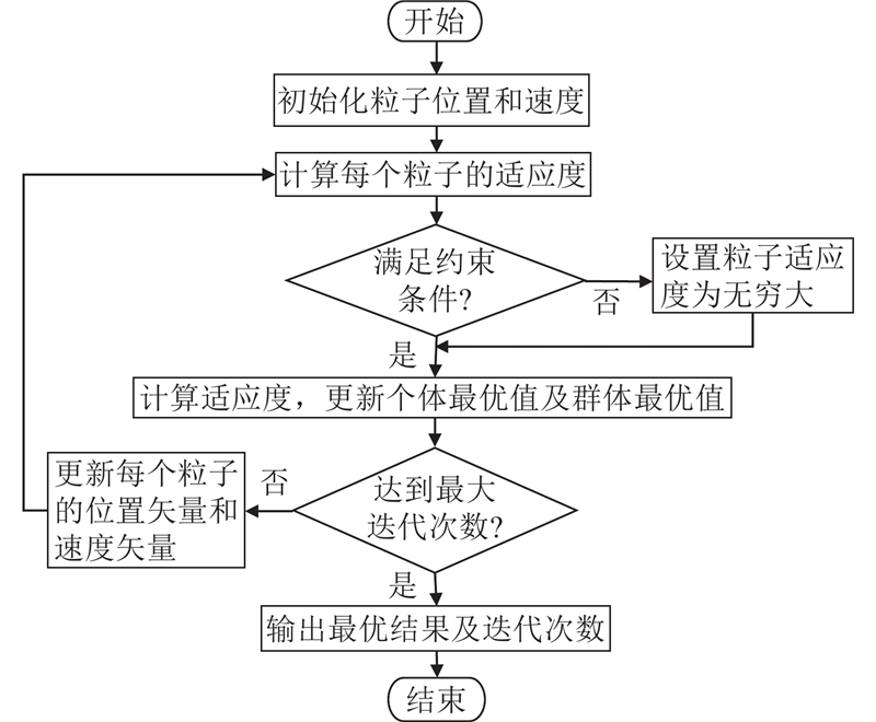 粒子群优化(particle swarm optimization, PSO)源于对鸟群捕食行为的研究,基本思想是通过群体成员之间的协作和信息共享来寻求最优解空间. 在初始化个体时,个体均带有位置和速度属性,个体寻优过程会随机生成速度矢量,并更新对应位置. 个体均记录自己的最优位置,即局部最优解,群体中所有个体的最优位置可以看作是群体的全局最优解. 通过不断更新粒子速度和位置,群体逐渐向全局最优解靠拢. 算法基本原理:在
