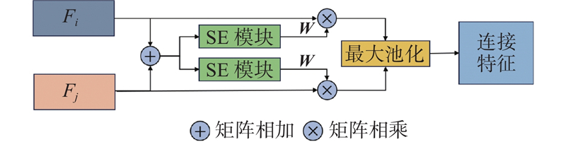 受到Hu等[25]提出的通道注意力机制——压缩-激励(squeeze-and-excitation,SE)模块启发,本研究设计配对面注意力模块(paired face attention module,PFA)来辅助融合2个建筑点云平面的特征,通过动态权重机制增强关键特征,抑制无关信息的干扰. 传统特征拼接方法仅能实现特征的简单组合,无法区分不同通道特征的重要性(如位置坐标、法线向量、置信度等). PFA能够显著提升模型对复杂拓扑结构的表达能力,它不采用固定融合策略,会针对每对平面特征自适应生成权重矩阵. 在生成的权重矩阵中关键特征的权重较大,不相关特征会被分配较小的权重,使得模型更加关注关键特征并且抑制不相关特征.