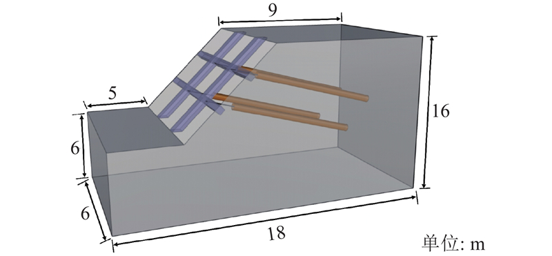 如图11所示,西北地区某边坡支护工程边坡高度为18 m,土体冻结温度为−1 ℃,冬半年平均地表温度为−17 ℃. 初步拟定框架锚杆支护边坡所用混凝土标号为C30,锚杆杆体采用HRB400钢筋,取锚杆间距为2 m,混凝土的弹性模量为3.0×104 MPa,锚杆弹性模量为3.5×105 MPa,锚杆注浆体弹性模量为3.0×104 MPa,锚杆孔径为150 mm,锚杆长度为10 m. 框架横梁宽度设计宽度为550 mm,立柱设计宽度为500 mm,横梁和立柱之间的间距为2 m. 该边坡岩土体以粉质黏土