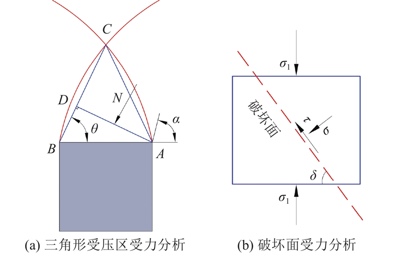 Fig.3 Mechanical analysis of triangular compression zone and failure surface