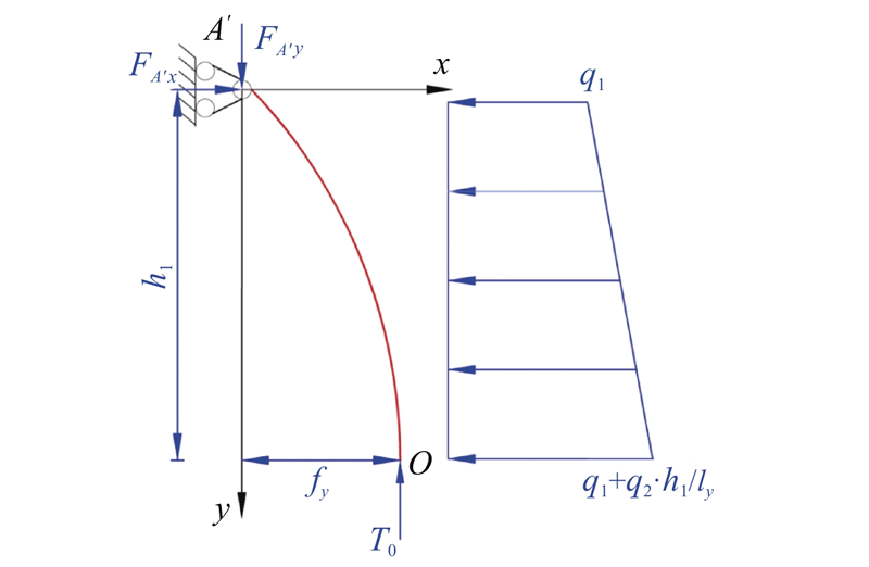 依据荷载的分布情况考虑结构的稳定性,梯形荷载施加给土拱的力和拱脚处所受水平方向的反作用力应大小相等,可以得到