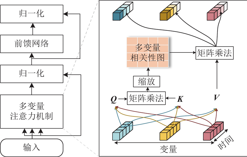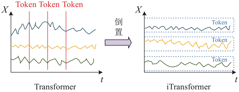 ... 借鉴iTransformer[45 ] 的设计思路,在不改变transformer网络结构框架的前提下,提出变量分离的编码策略. 该方法将一个变量的整个序列视为一个独立的token,利用注意力机制建模不同变量之间的依赖关系. 利用前馈神经网络深度提取变量内部沿时间维度的动态特征,从而实现对多变量时序轨迹更充分、更具判别性的表征. Transformer和iTransformer的数据处理方式比较如图4 所示. ...
