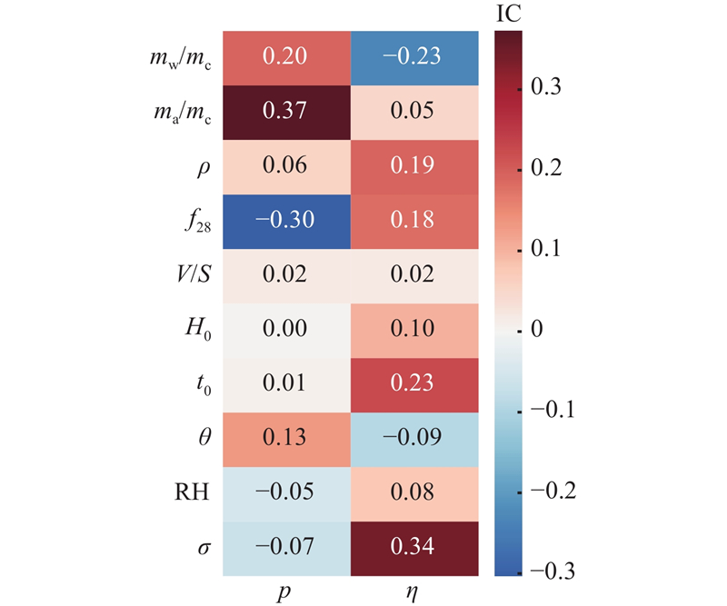在特征工程方面,选取10个基本特征作为模型输入. 这些特征可以分为3类:材料特征、环境特征和荷载特征. 材料特征包括ρ、mw/mc、ma/mc和f28,环境特征包括