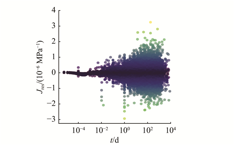 Fig.6 Residual between fitted specific creep and measured specific creep