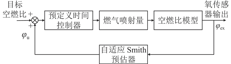对于空燃比控制,基于改进的Smith预估器对传感器输出进行动态补偿. 基于补偿输出和设定值之间的差异,设计空燃比闭环控制器. 控制策略如图3所示.