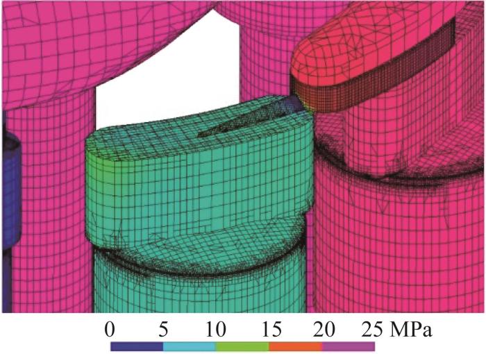 阻尼槽与柱塞孔完全接触时的压力分布云图(主轴旋转21°)