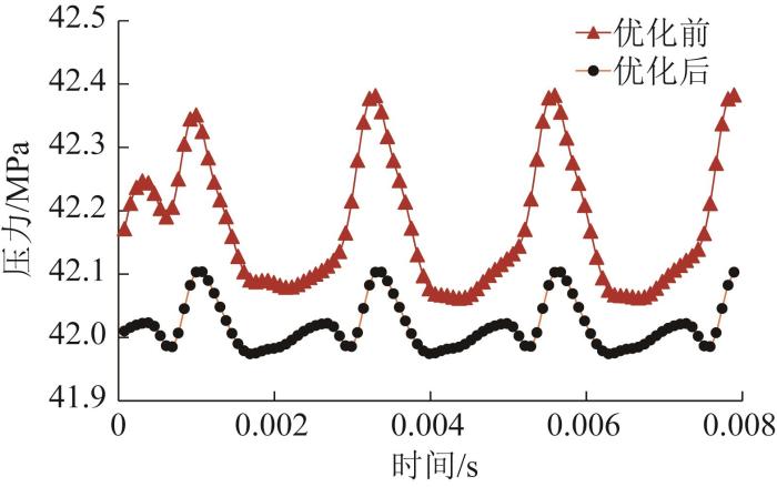 优化前后轴向柱塞泵出口压力曲线