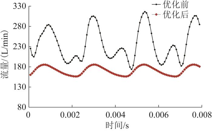 优化前后轴向柱塞泵出口流量曲线