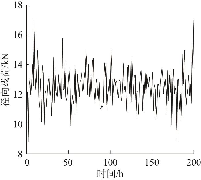 根据L 10 = 200 h ,每小时采集1次载荷数据进行蒙特卡洛模拟。所采集的轴承径向载荷如图4 所示。