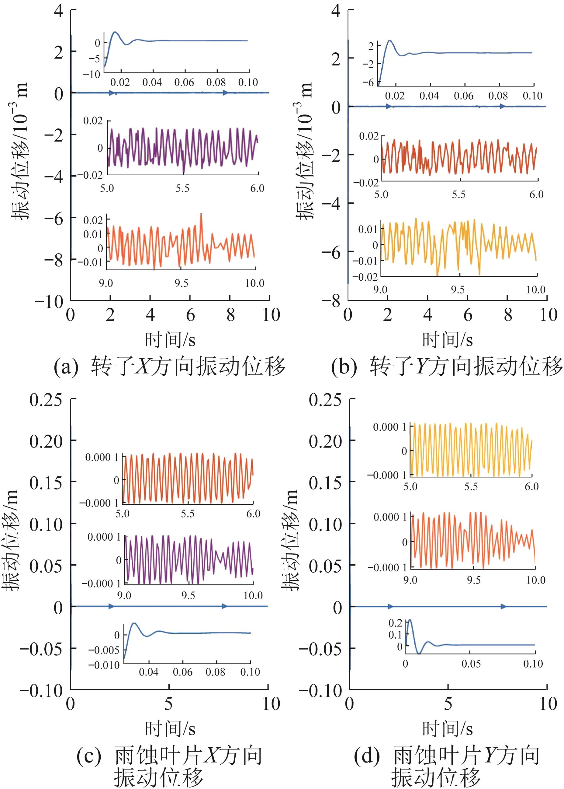 | 图7 自抗扰解耦控制下转子-雨蚀叶片系统的振动位移 |