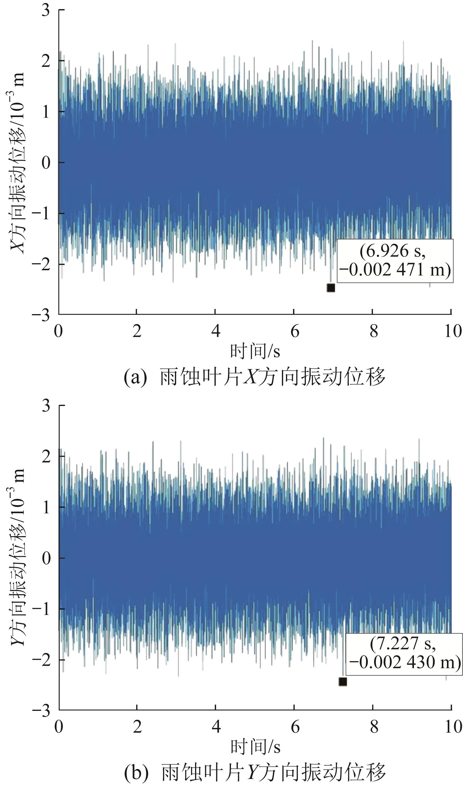 | 图10 采用自抗扰解耦控制前雨蚀叶片的振动位移时域图 |