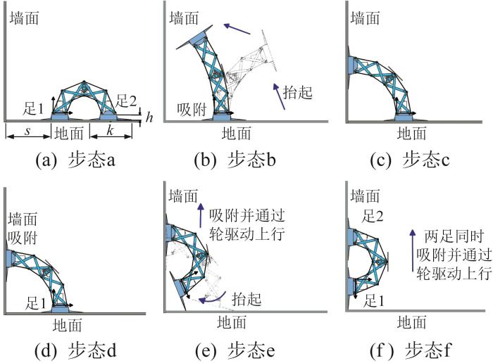 机器人从竖直墙面穿越狭小空间的步态序列