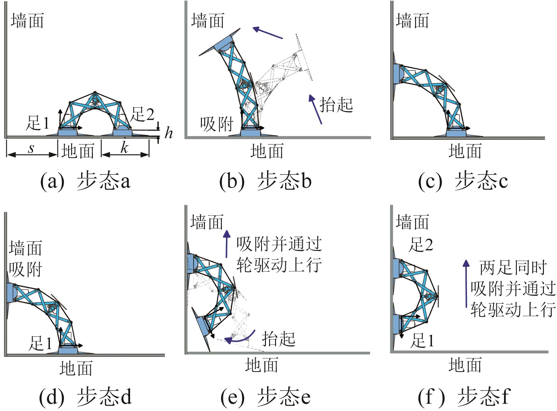 | 图8 机器人从水平地面攀爬到竖直墙面的步态序列 |