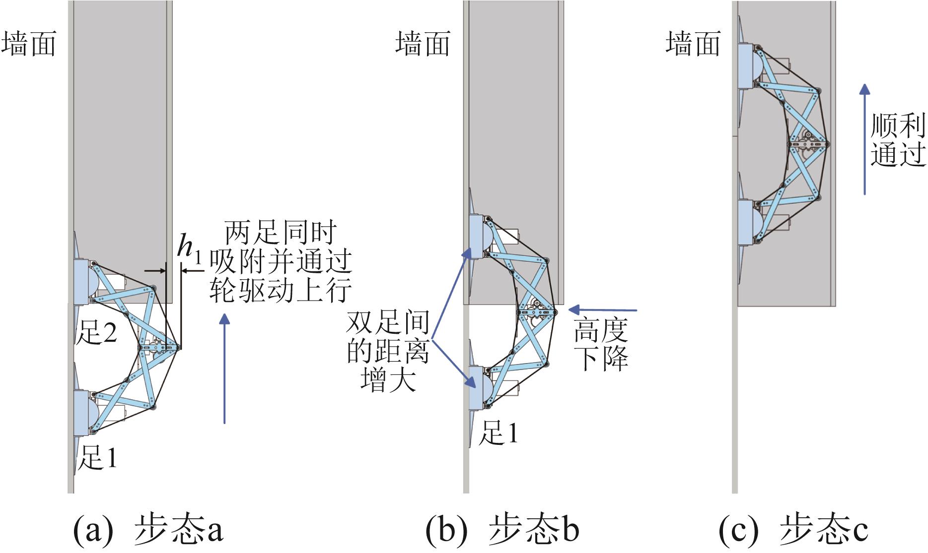 | 图9 机器人从竖直墙面穿越狭小空间的步态序列 |
