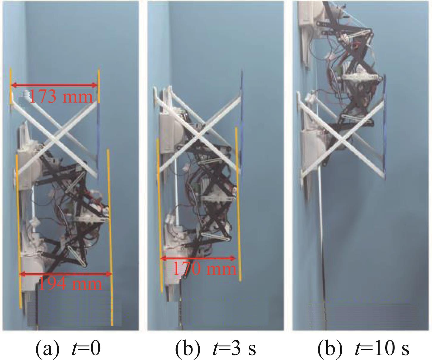 | 图12 机器人从竖直墙面穿越狭小空间的实验 |