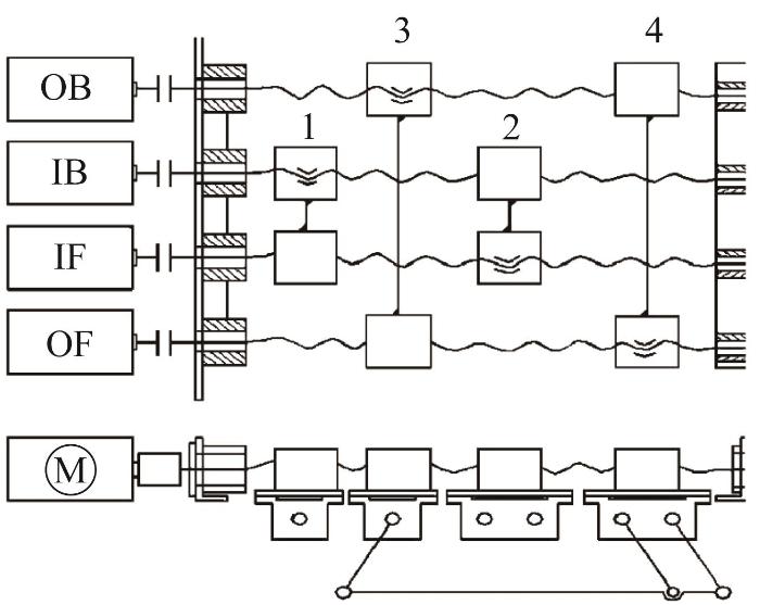 机器人本体结构简图如图4所示。图中,OB为控制外腿后滑块移动的电机,OF为控制外腿前滑块移动的电机,IB为控制内腿后滑块移动的电机,IF为控制内腿前滑块移动的电机。