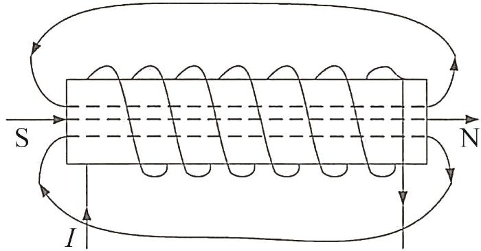 式中:N为线圈匝数,I为导线中通入的电流,R1为螺线管内径,R2为线管外径,