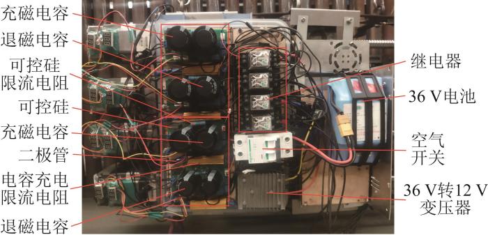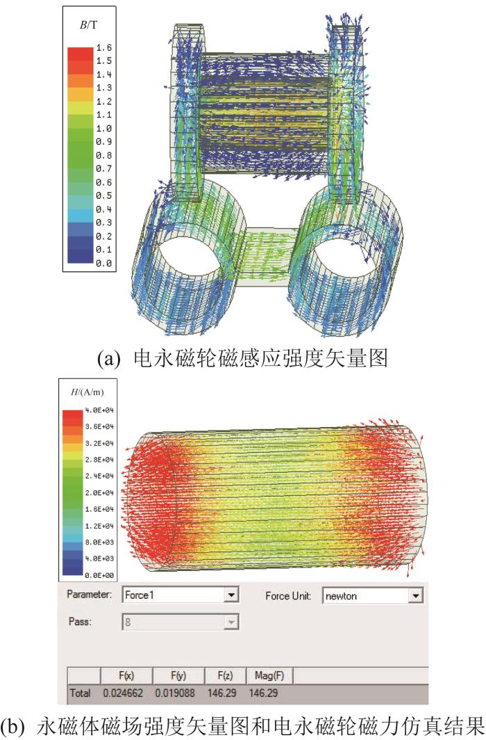 2)采用Maxwell软件对电永磁轮充/退磁进行了仿真,并结合实验得到了电永磁轮充/退磁电流和充/退磁后的轮子吸力。设计了电永磁轮充/退磁电路,分析了储能电容给励磁线圈放电的电流激励。