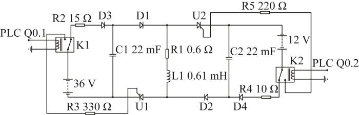 永磁体的充/退磁只与充/退磁电流的大小有关,与电流持续时间无关。充/退磁时,线圈中的电流密度会达到几百A/mm2。为了减少发热,必须缩短通电时间,因此采用脉冲电流在线圈中产生脉冲磁场的方法为永磁体充/退磁。本文采用电容放电的方式来产生充/退磁所需的脉冲电流。首先给电容充电,电容存储的电荷量