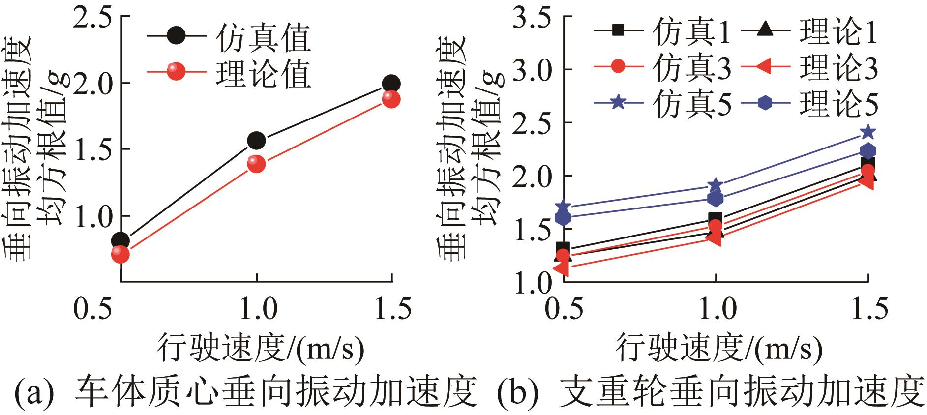 | 图8 行驶速度对履带机器人车体及支重轮垂向振动的影响 |
