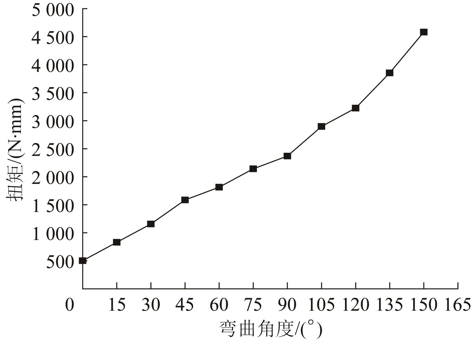 | 图11 柔性连续体机械臂扭矩随弯曲角度的变化曲线 |