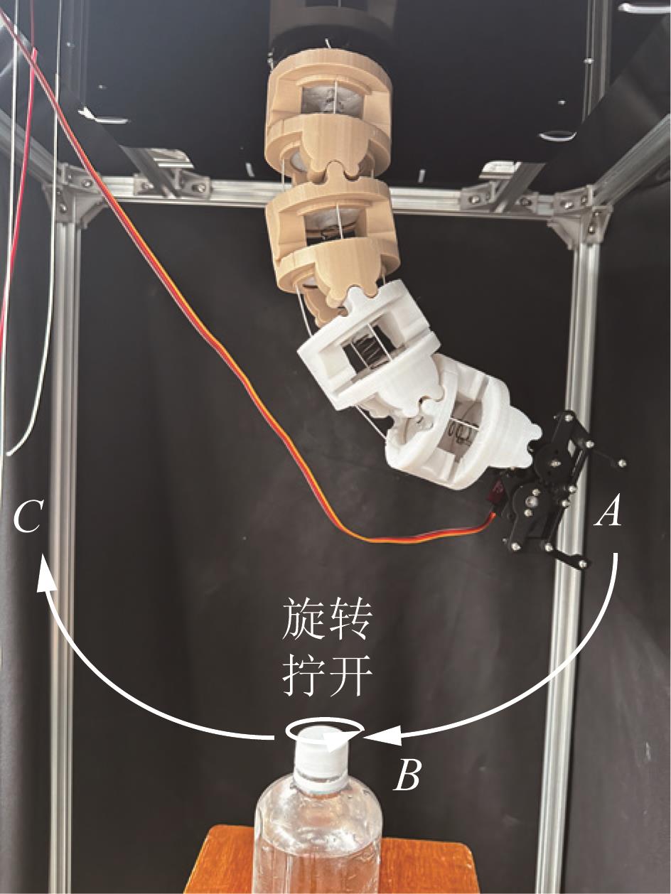 | 图12 柔性连续体机械臂拧松瓶盖实验方案 |