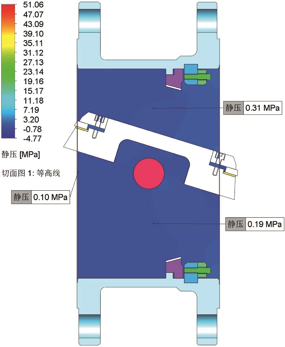 | 图9 开度为80%时阀腔内流体的压力云图 |