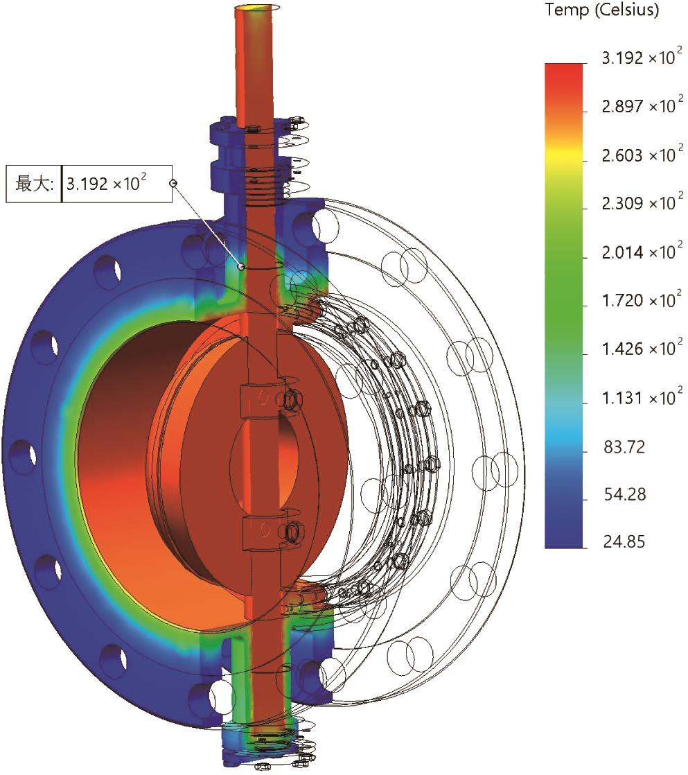 | Fig.15 Temperature cloud map of new butterfly valve |