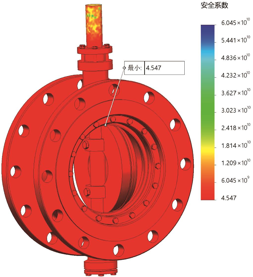 | 图19 新型蝶阀的安全系数云图 |