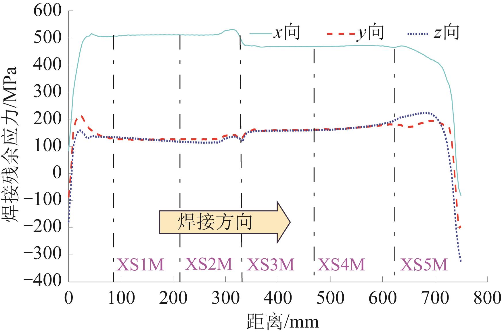 | 图5 振动器平板沿焊接方向的焊接残余应力 |