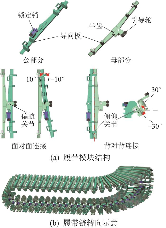 模块化可锁定履带的结构与转向示意图