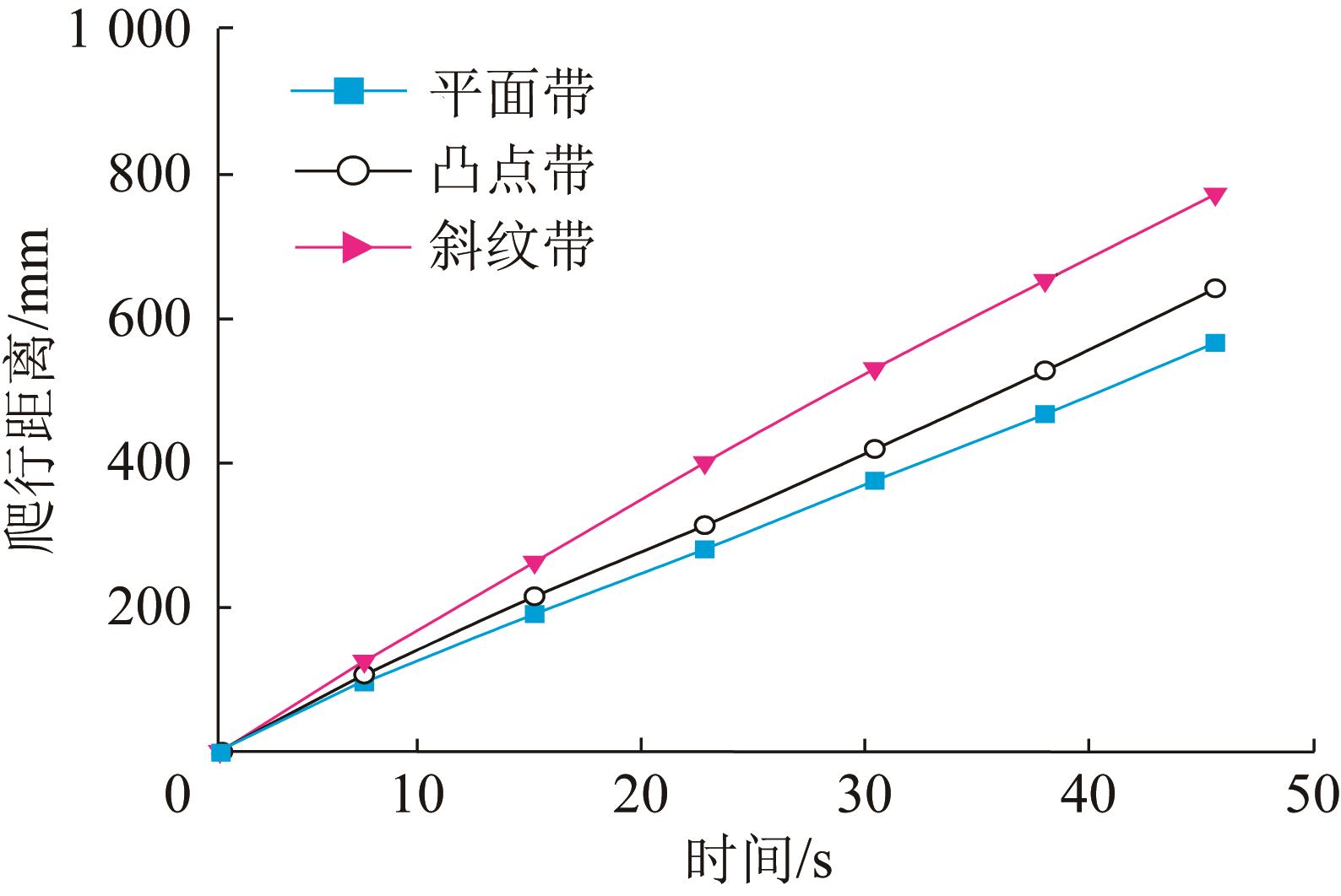 摩擦带带型对机器人爬行距离的影响