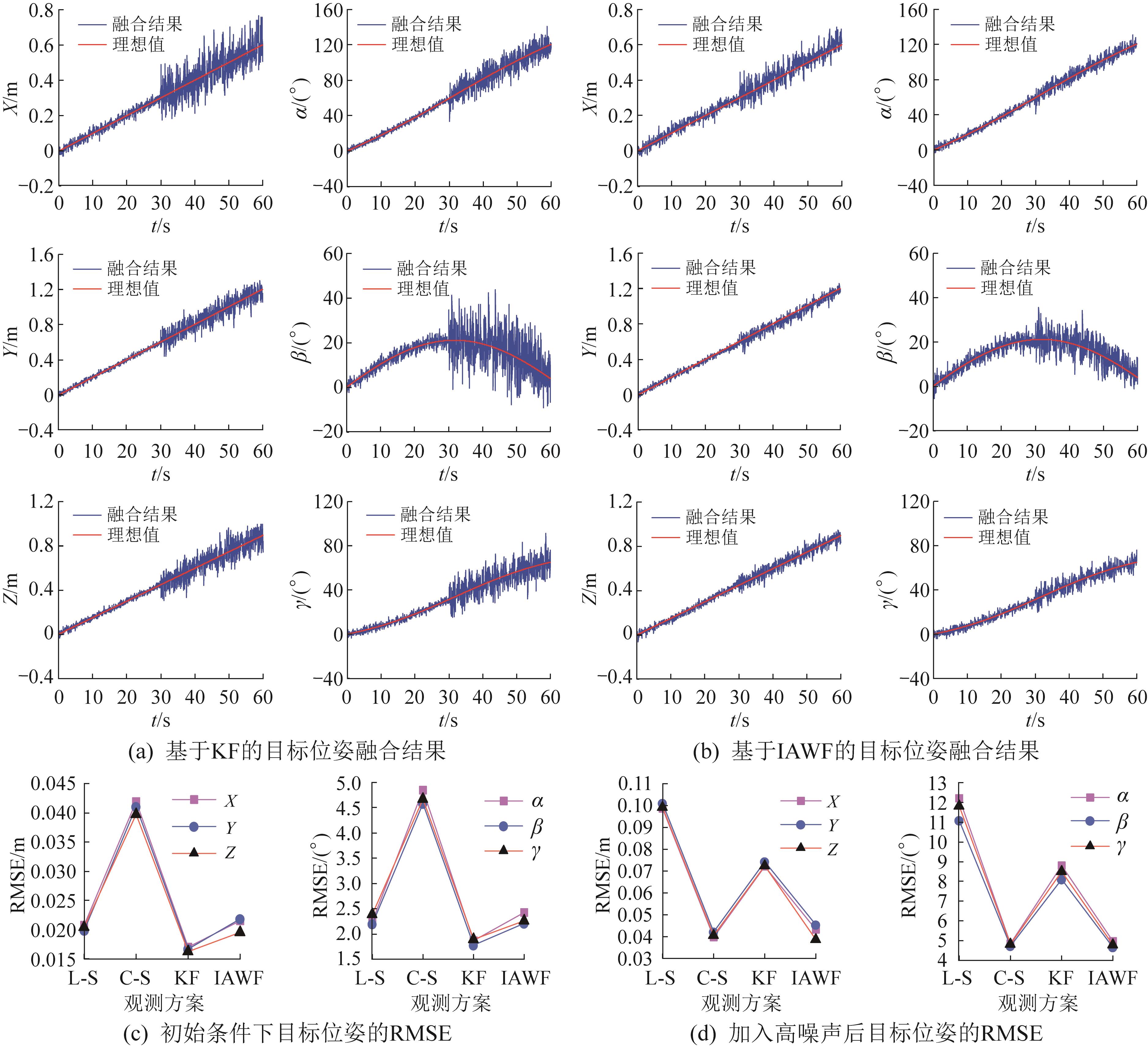 | 图6 基于不同融合算法的目标位姿对比及测量误差分析 |