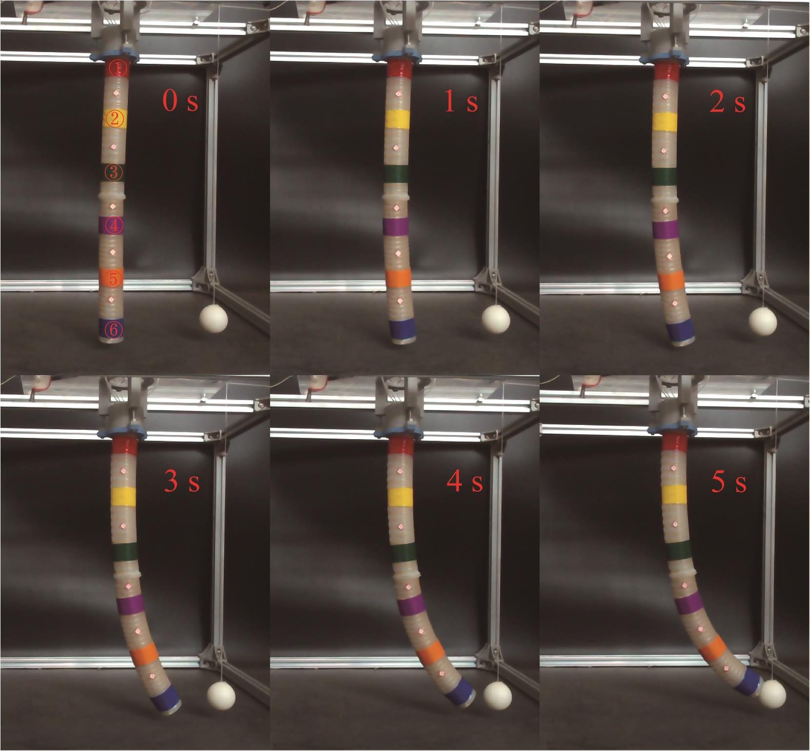 | Fig.11 Postures of L-shaped soft robotic arm at different times |