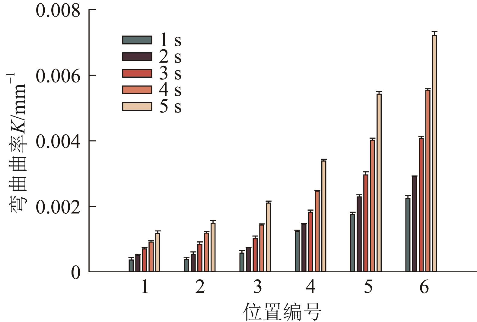 | 图13 L形软体机械臂不同位置处的弯曲曲率 |