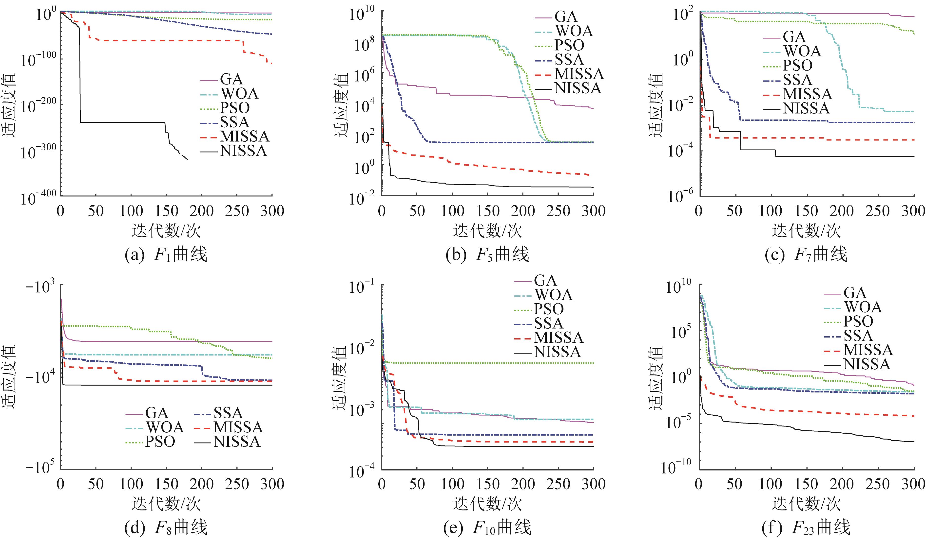 | 图6 不同测试函数下各算法的收敛曲线 |