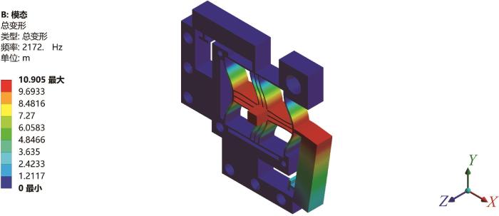 目前,类似精密运动平台的一阶固有频率为2 000~2 400 Hz [16 ] ,位移放大倍数为2.7~3.1[17 ] ,具备一定的工作性能,但在高速精密运动控制等应用场景中,仍需进一步优化以提高其带宽和运动增益。为避免输入信号高频分量引起的机械振动,同时解决由刚度约束导致的运动行程不足的问题[18 ] ,本文设定精密运动平台的一阶固有频率高于2 150 Hz,位移放大倍数大于3.0,以综合提升其抗振性能和运动性能。