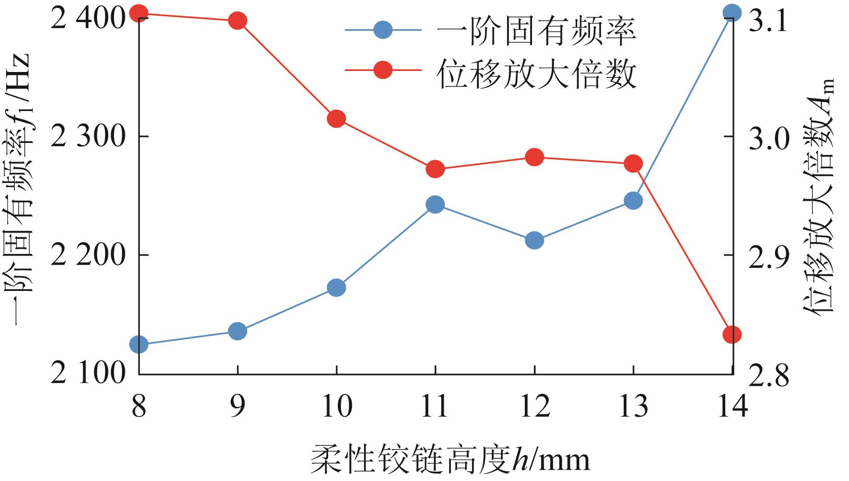 | 图8 柔性铰链高度对精密运动平台性能的影响 |