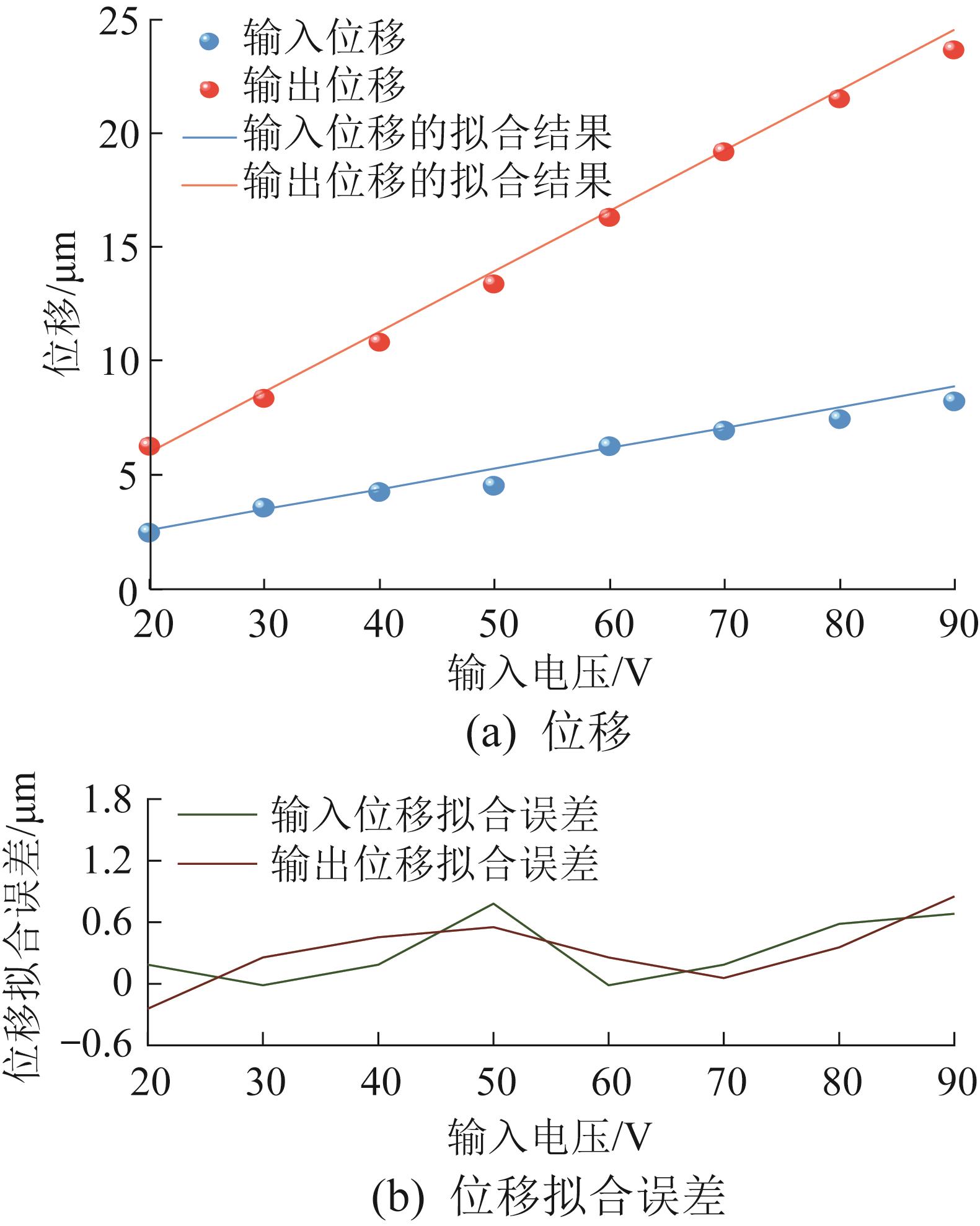 | 图17 精密运动平台输入、输出位移及其线性拟合误差 |