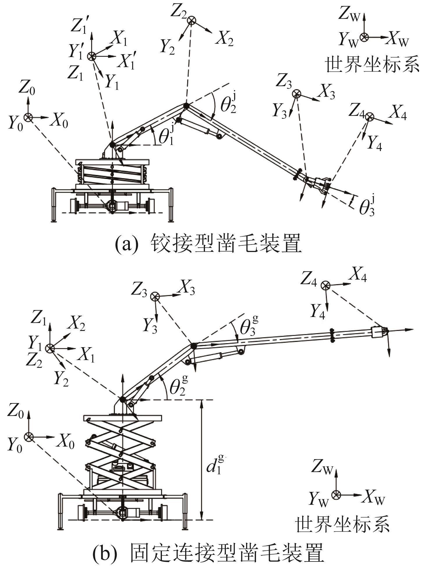 | Fig.5 Linkage coordinate systems of scabbling device |