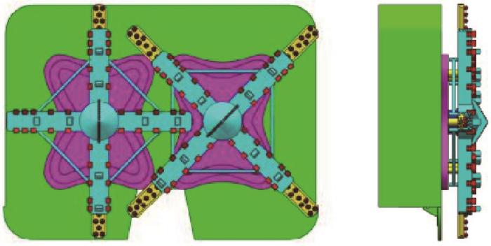 综上所述,国内外现有的全断面矩形掘进机刀盘结构复杂,需要多个刀盘组合或复杂的伸缩机构来实现矩形断面截割成形,导致刀盘截割情况复杂、控制难度大。