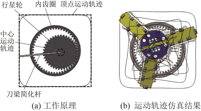 基于上文勒洛三角形各角点与中心点的运动关系,设计行星齿轮驱动的刀盘,行星轮自转与公转的速度比为1∶3。该速度比可依靠内啮合行星齿轮驱动来实现,内啮合行星齿轮的半径比
