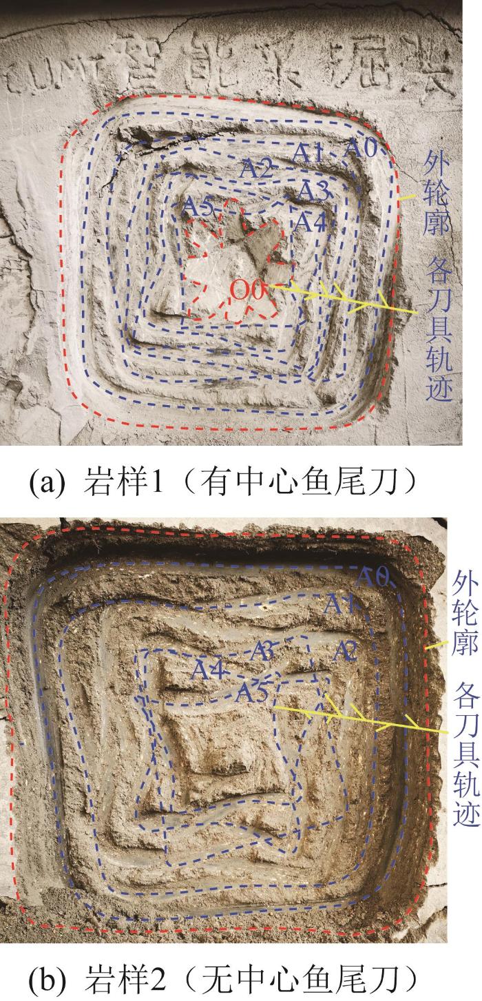 4)岩样截割断面的实际轮廓与仿真轮廓、理论轮廓保持一致,均为带圆角的矩形断面,验证了采用偏心轴行星齿轮驱动的勒洛三角形刀盘实现矩形全断面截割的可行性。所设计刀盘的理论截割断面的轮廓与标准正方形的周长差异率和面积差异率分别为5.13%和1.23%;岩样截割断面的实际轮廓与仿真轮廓的周长差异率均小于5%,面积差异率均小于9%。